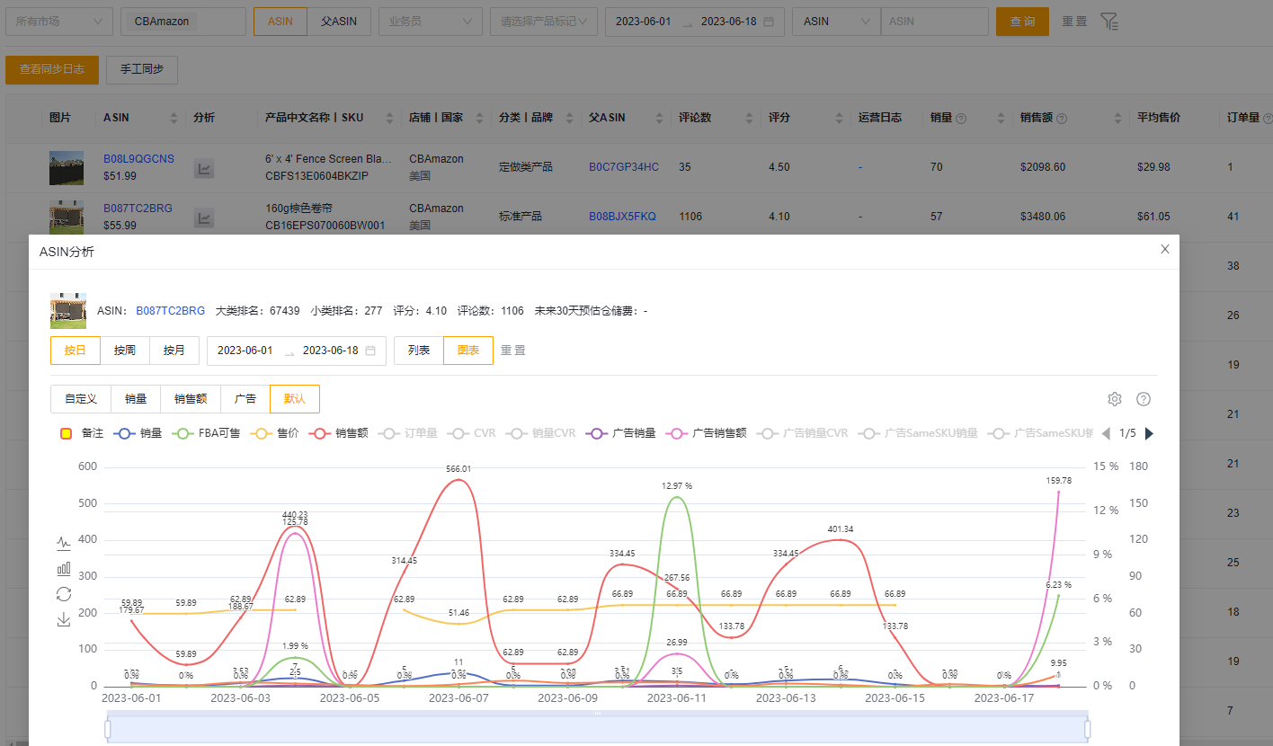销售产品的表现,结合产品销量、亚马逊业务报告等多达35项的关键数据展示,为运营决策方提供丰富的运营数据支撑;