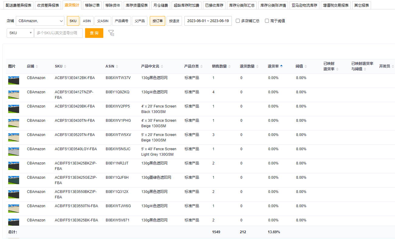 退货统计、产品问题统计,为销售产品改进提供量化的数据支撑;配送费差异报告,FBA收货差异情况报表,提供与亚马逊后台数据的核对渠道,找出差异,弥补损失。