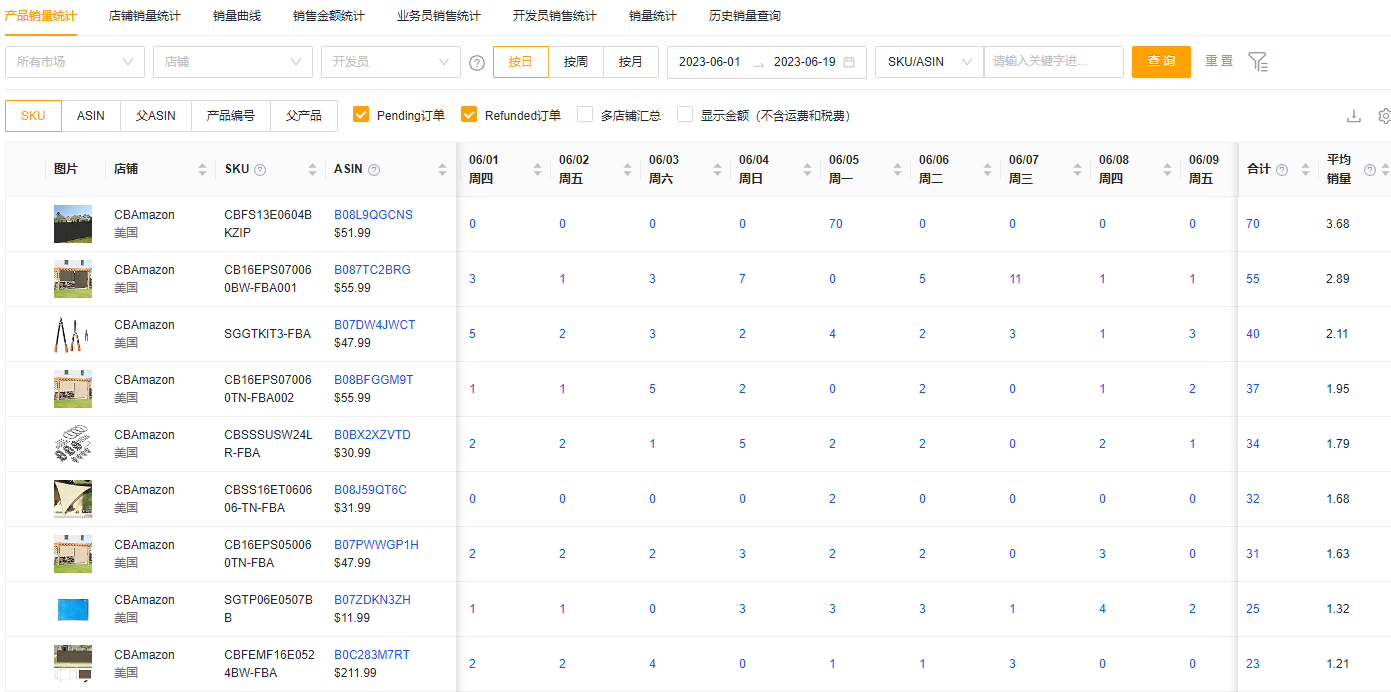 产品销量统计,提供按SKU、仓库产品编号、店铺、业务员等多维度销量统计;SKU利润核算,按自然月度进行统计,各项亚马逊成本(如:采购成本、促销费、仓储费、站外费用等),SKU毛利润一目了然;